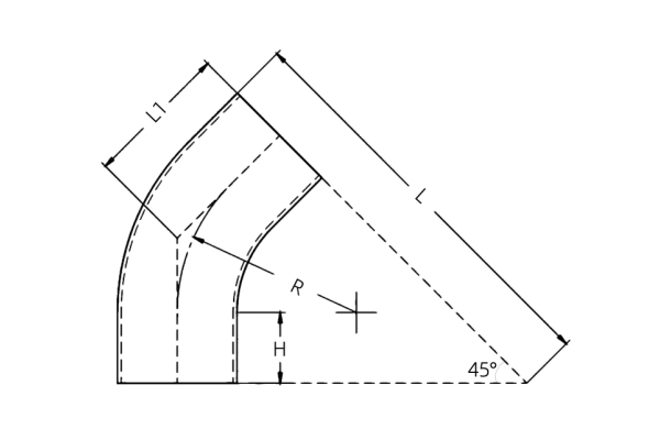 Putken suunnan muuttamiseen käytetään ruostumattomasta teräksestä 45 ° lyhyttä kyynärpäätä, ja taivutetulla osalla on asteittainen kaarevuus. Sen kaksi päätä on hitsata putkeen mukautuakseen putken 45 ° kulman muutokseen.