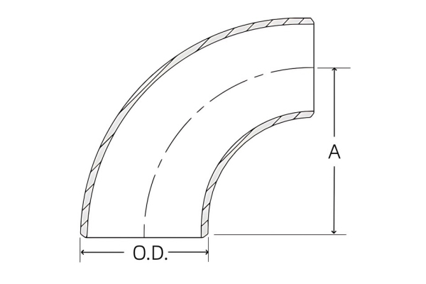 | Nimellisputken koko | O.D. | Seinämän paksuus | Pitkä | Lyhyt Säde | |||